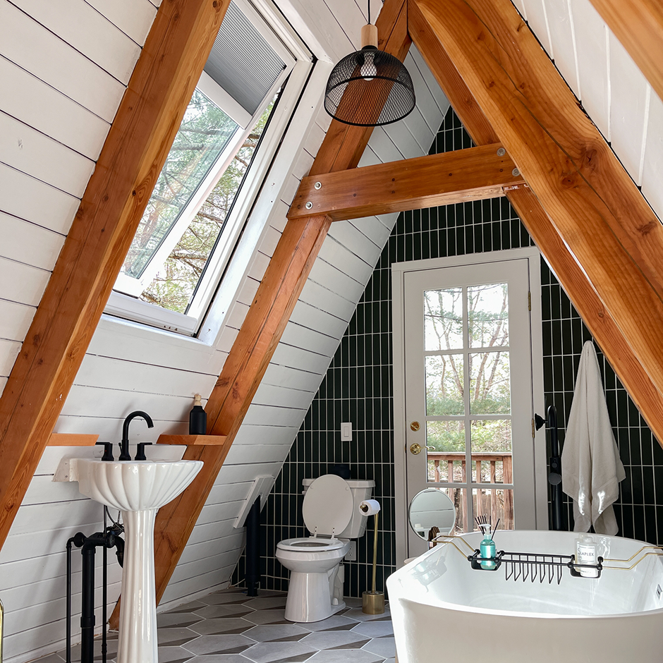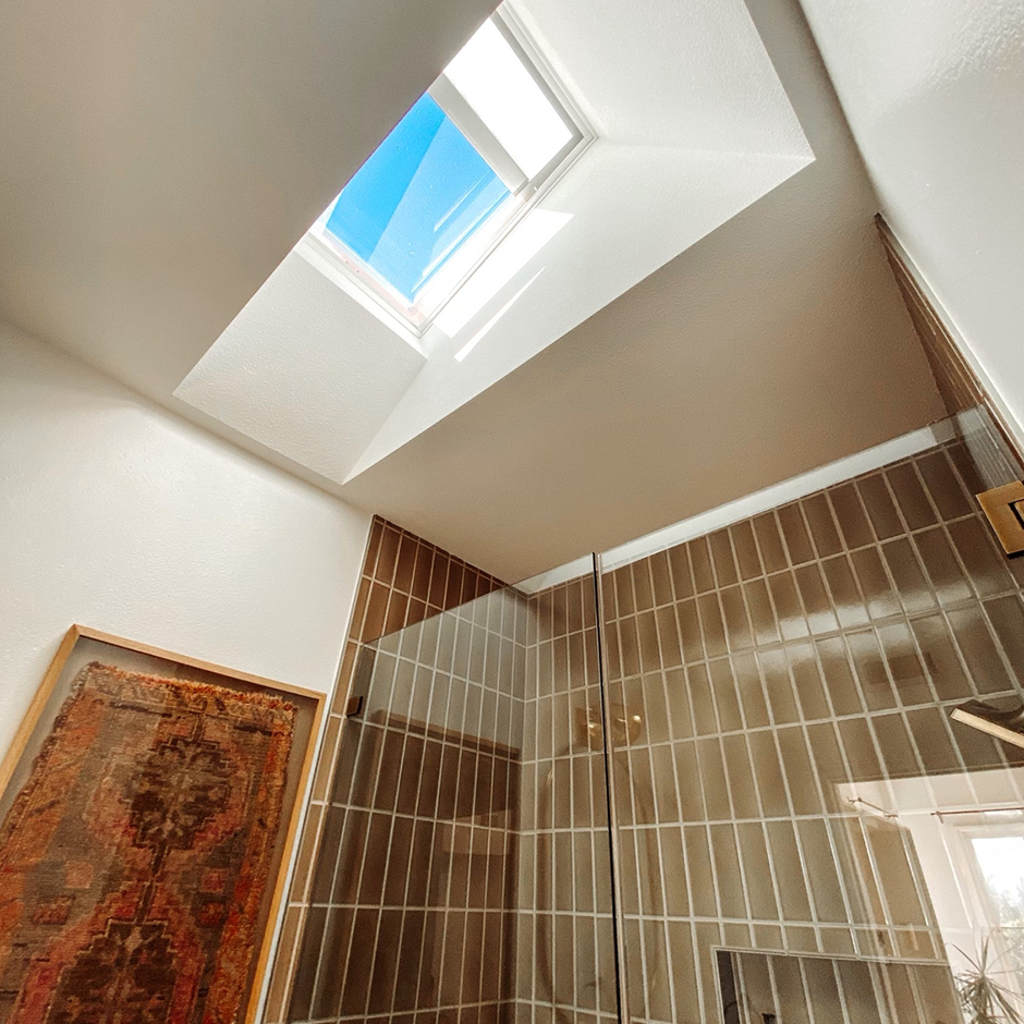 When ceiling space is limited in a bathroom you still have options! Instead of a traditional skylight, a SUN TUNNEL® Skylight can go in your space. It brings in all the benefits of natural light without taking up too much room. Learn more about VELUX SUN TUNNEL® Skylights.