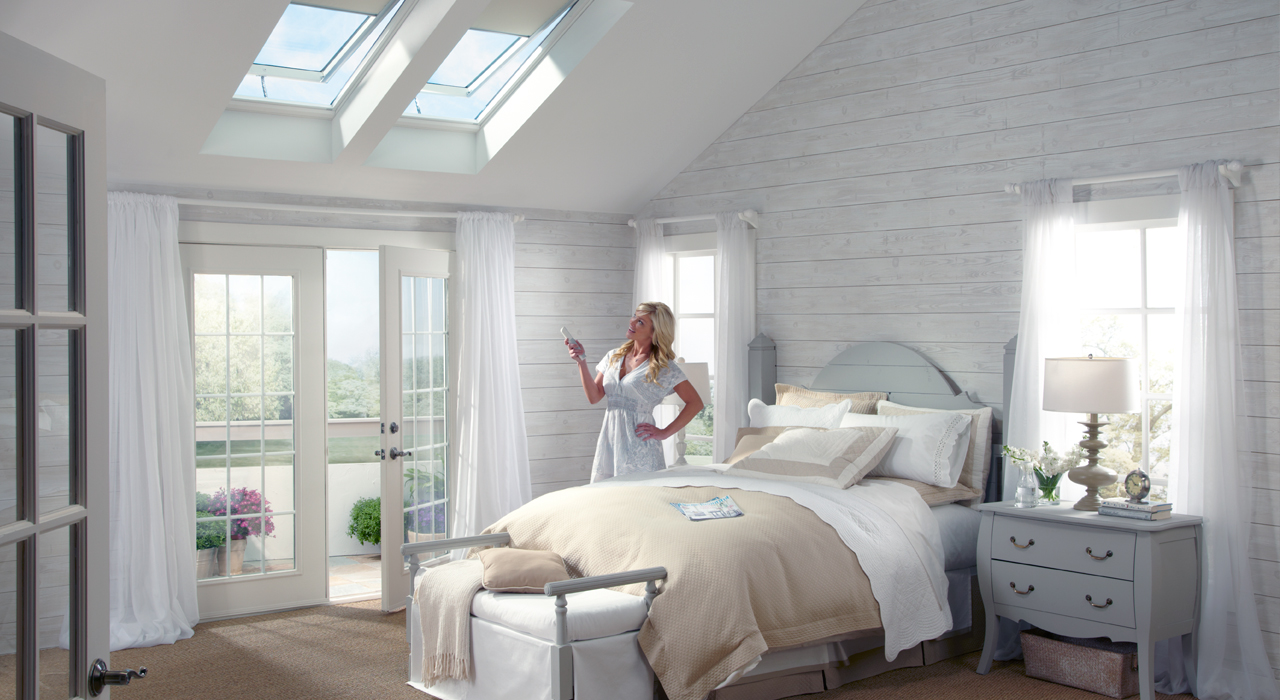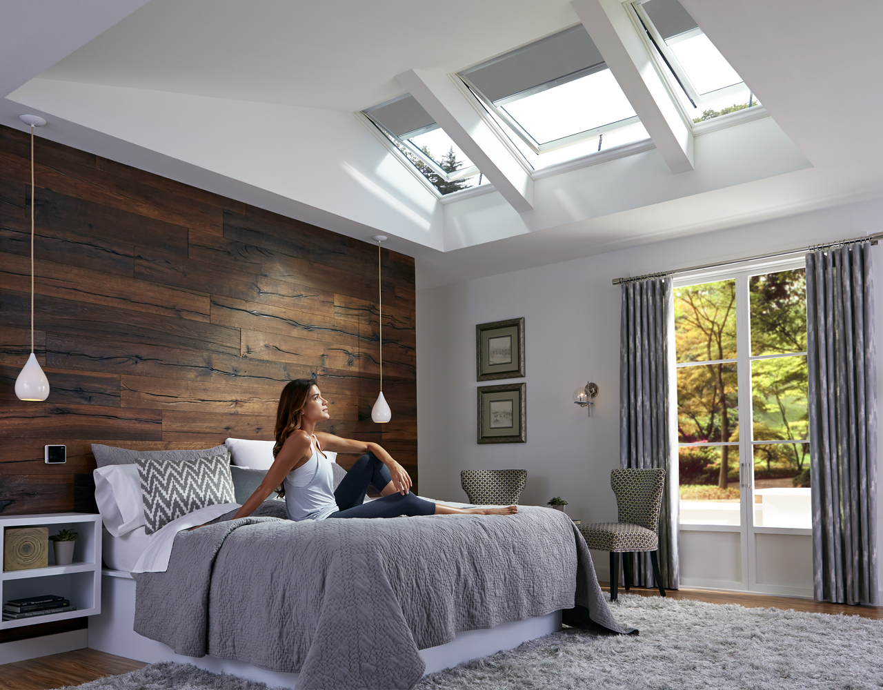 Une chambre d'enfant doit être lumineuse et ensoleillée, mais également offrir une bonne intimité. Un puits de lumière « Fresh Air Skylight » à énergie solaire de VELUX est la solution parfaite. L'air frais et la lumière du jour peuvent pénétrer, mais comme il est au plafond, il est sécuritaire pour les enfants curieux.